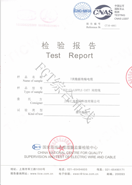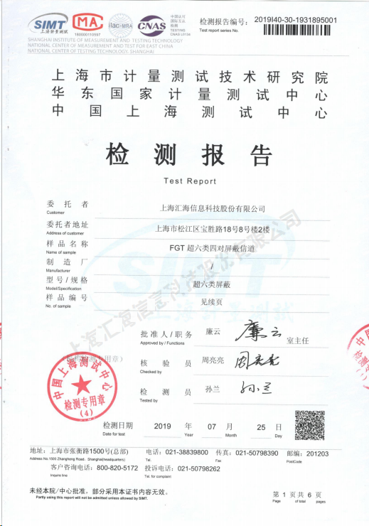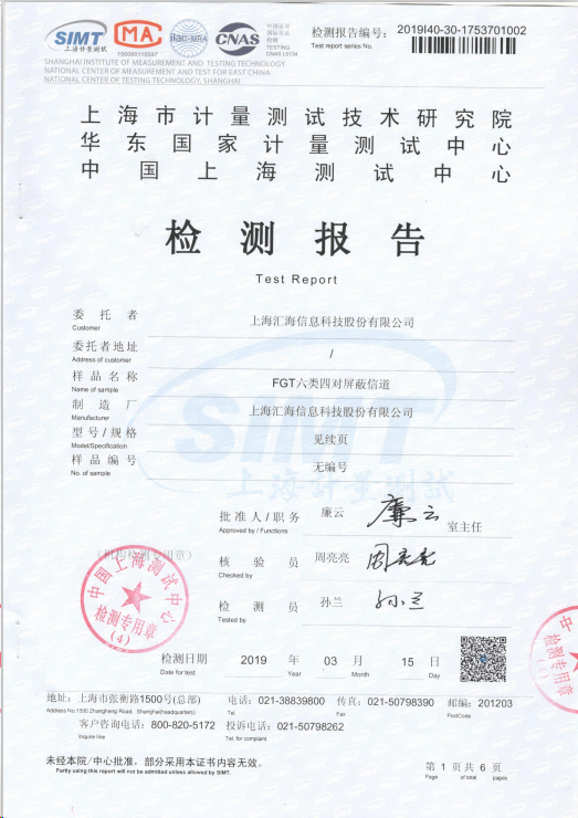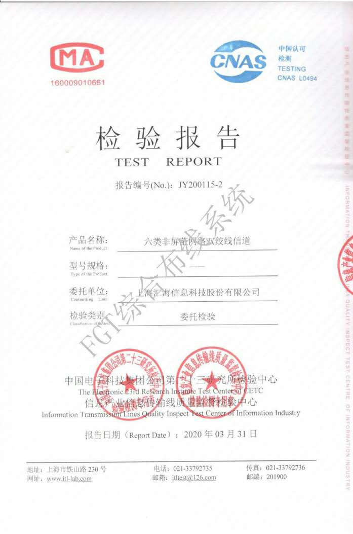 六類屏蔽網(wǎng)線檢測報告