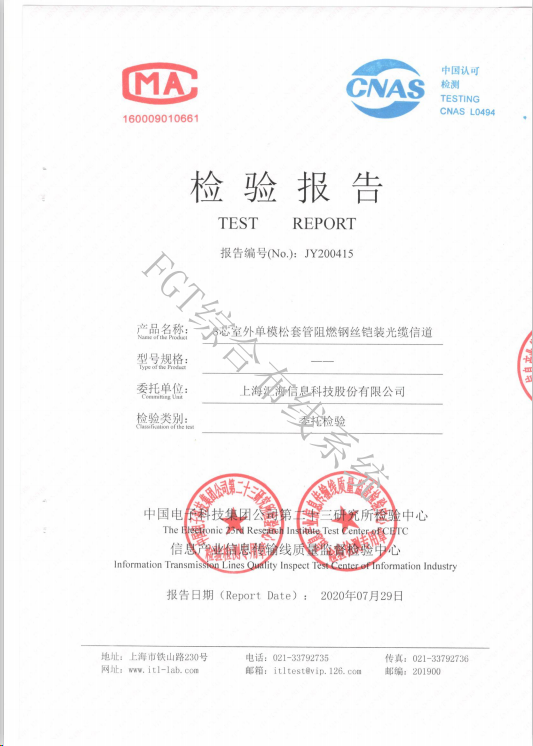 8芯室外層絞式重鎧單模光纜檢測報告