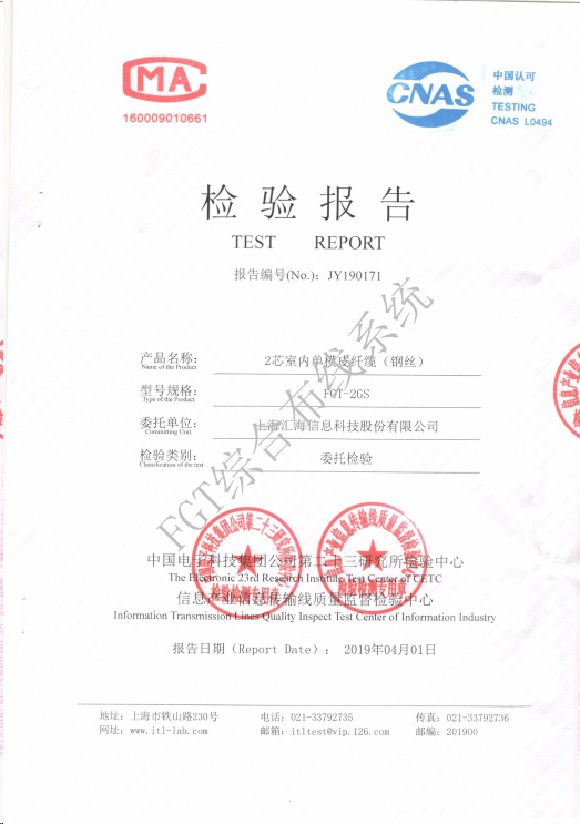 2芯室內(nèi)單模皮纖纜檢測報告