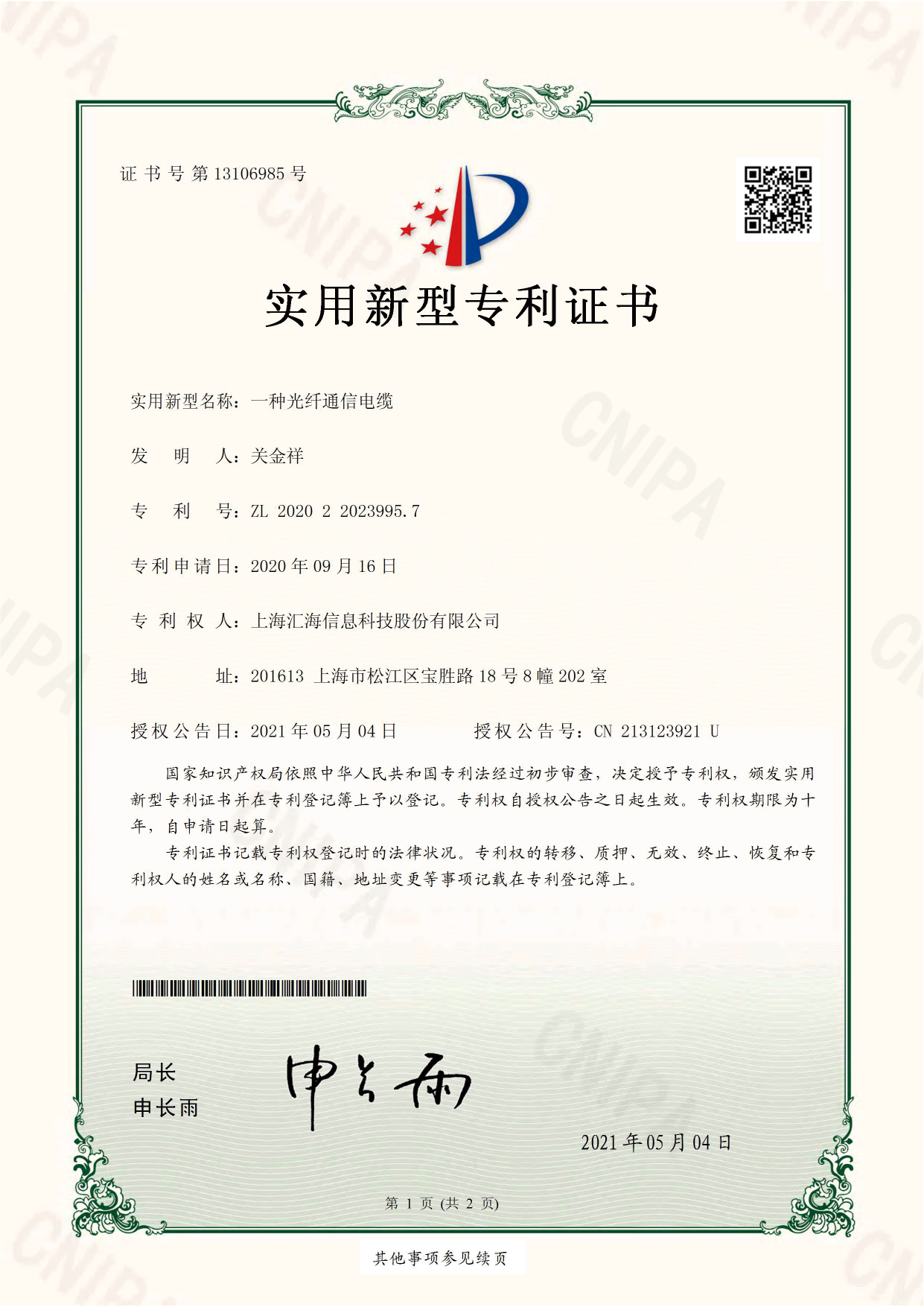專利證書